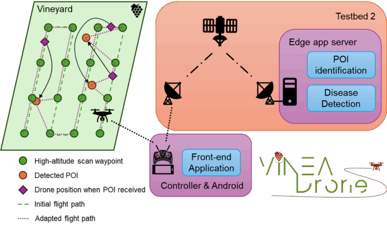 VINEA-Drone is a precision viticulture project that uses drones to automate early disease detection in vineyards. A high-altitude multispectral scan quickly identifies areas showing signs of stress or disease and adapts the flight path for targeted inspection. Close-up images are then automatically analysed to detect symptoms. The system includes a mobile app where growers can plan missions, view results, and add their inspection points, making vineyard monitoring easier and more efficient. VINEA-Drone is being developed with grower input to ensure it meets real-world needs and supports sustainable, modern viticulture.