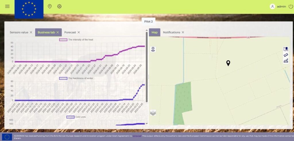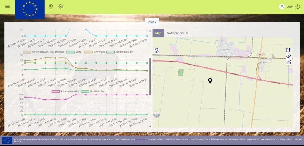 The AGRARIAN Pilot 2 focuses on field crop monitoring through an integrated edge farming infrastructure that leverages a dynamic, programmable environment combining satellite, aerial, and ground data. The core innovation lies in the development of advanced algorithms that provide real-time recommendations and alerts for critical agricultural activities such as sowing, irrigation, pest control, and treatment applications. These algorithms use weather station data, soil parameters, and crop-specific growth models to trigger actions that optimize yield and resource usage.