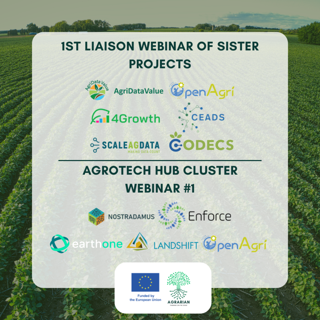 Collaboration is at the heart of the Horizon Europe journey. Recently, AGRARIAN had the opportunity to join several of our sister projects for two important “cluster” webinars to discuss the future of agricultural data.